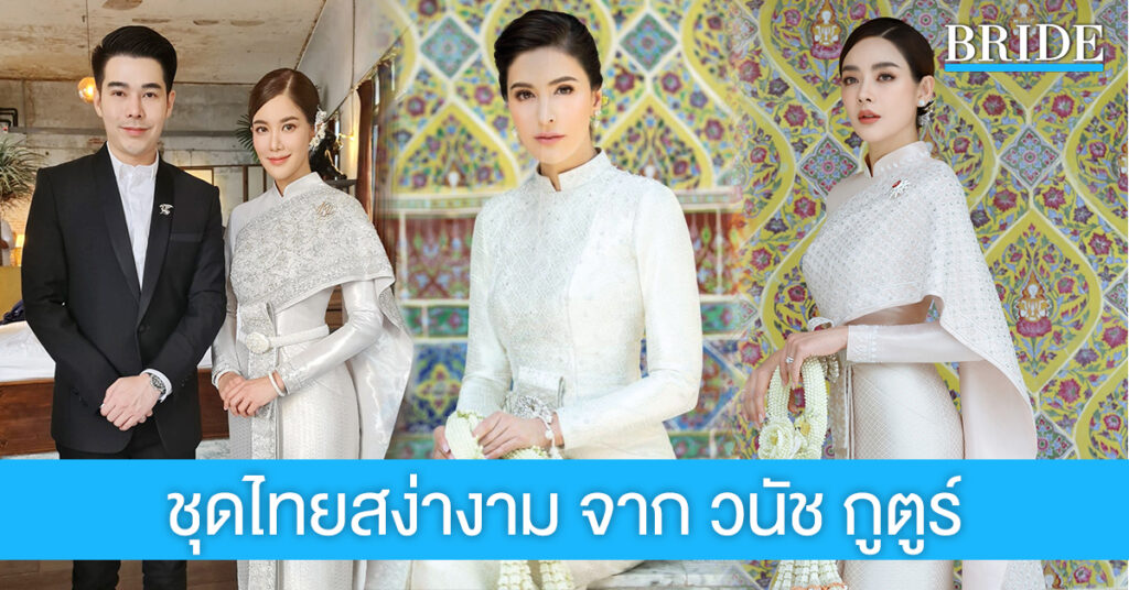 วันเริ่มต้นชีวิตคู่ของบ่าวสาวตามประเพณีไทยนั้น เต็มไปด้วยพิธีการและขั้นตอนอันเป็นมงคลมากมาย เพราะฉะนั้นการเลือกชุดสำหรับเจ้าสาวเพื่อสวมใส่ในโอกาสพิเศษเช่นนี้จึงต้องมีความพิถีพิถัน ใส่ใจในทุกขั้นตอน ทั้งเพื่อให้เหมาะสมกับโอกาส และเสริมความสวยสง่างามให้กับผู้สวมใส่ ซึ่ง Bride Magazine ฉบับนี้ขอพาไปดูชุดไทยสวยงามเรียบหรูของ 3 เจ้าสาวคนดัง ที่สวมใส่ในวันเข้าเฝ้าฯ สมเด็จพระสังฆราช เพื่อขอประทานพร-รับประทานน้ำพระพุทธมนต์ เพื่อเป็นสิริมงคลในการเริ่มต้นชีวิตคู่ ซึ่งออกแบบและตัดเย็บอย่างประณีตบรรจง มีเอกลักษณ์เฉพาะตัว อีกทั้งเปี่ยมไปด้วยความหมายดีๆ จากห้องเสื้อวนัชกูตูร์ แบรนด์ชุดวิวาห์อันดับต้นๆ ของเมืองไทยที่เหล่าเซเลบริตี้และคนดังไว้วางใจมากที่สุด