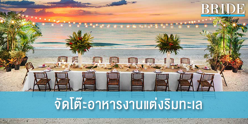 ช่วงปลายปีแบบนี้เป็นช่วงที่เป็นที่นิยมในการจัดงานแต่งงานมาตลอด เนื่องด้วยสภาพอากาศที่ไม่ร้อนมาก และเหมาะแก่การท่องเที่ยวควบคู่ไปด้วย และสถานที่ที่หลายคู่นิยมไปจัดงานแต่งนอกสถานที่ก็คือ “ทะเล” นั่นเอง โดยช่วงเดือนพฤศจิกายนเป็นต้นไปจนถึงประมาณเดือนเมษายนของทุกปี เป็นช่วงที่ทะเลฝั่งอันดามัน ฝั่งอ่าวไทยตอนบน และทะเลฝั่งตะวันออกจะสวยเป็นพิเศษ ไม่มีมรสุมมากวนใจ เหมาะแก่การจัดกิจกรรมงานรื่นเริงมากๆ วันนี้เราจึงรวบรวมภาพไอเดียที่เกี่ยวกับการจัดแต่งโต๊ะอาหารงานแต่ง สำหรับปาร์ตี้สังสรรค์ริมทะเล พร้อมกับวิวสวยๆ บรรยากาศดีๆ มาฝาก เผื่อคู่ไหนที่สนใจและกำลังวางแผนกันอยู่ อาจจะถูกตาต้องใจและนำไปเป็นแนวทางการจัดงานของตัวเองได้