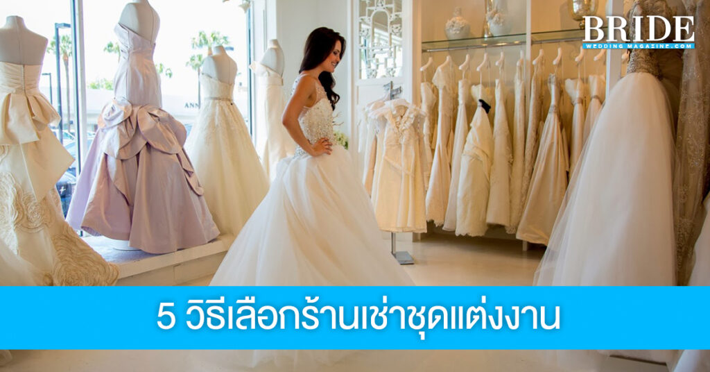 ความฝันของใครหลายๆ คนคือ การแต่งงาน ได้ใส่ชุดแต่งงานสวยๆ ยืนเคียงข้างคนที่รัก เพราะฉะนั้นขั้นตอนการเตรียมงานที่สำคัญและควรวางแผนไว้แต่เนิ่นๆ อีกหนึ่งขั้นตอนก็คือ การหาชุดแต่งงาน ซึ่งไม่ว่าจะเป็นงานแต่งรูปแบบใด ล้วนแต่มีชุดเฉพาะที่สวยงาม มีความโดดเด่น และก็ทำให้ราคาของชุดค่อนข้างสูงตามไปด้วย ฉะนั้นจะเลือกแบบขอไปทีก็คงจะน่าเสียดายเกินไป และเมื่อใกล้ถึงวันงาน เชื่อว่ามีหลายคู่ที่เจอปัญหาว่าจะไปเช่าชุดแต่งงานที่ไหนดี วันนี้ Bride มี 5 เคล็ดไม่ลับในการเลือกร้านเช่าชุดแต่งงาน เพื่อให้ได้ชุดสวยอย่างที่ฝันไว้ โดยที่ไม่ต้องเสียเวลา หรือมีปัญหาตามมาภายหลัง