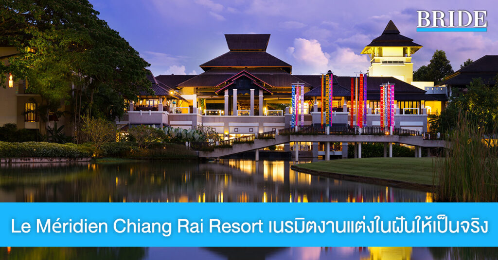 ชวนคู่รักหลีกหนีความวุ่นวายของเมืองใหญ่ ไปสัมผัสความสงบสุขท่ามกลางขุนเขาในดินแดนอารยธรรมล้านนา ณ Le Méridien Chiang Rai Resort (โรงแรม เลอ เมอริเดียน เชียงราย รีสอร์ท) ที่ตั้งอยู่ริมฝั่งแม่น้ำกกใกล้กับตัวเมืองเชียงราย ซึ่งคุณจะได้ชื่นชมทิวทัศน์สวยๆ ได้อย่างเต็มอิ่ม ส่วนคู่รักที่วางแผนจัดงานวิวาห์เรียบง่ายแบบล้านนา ทางโรงแรม พร้อมเนรมิตให้ตามความต้องการ ไม่ว่าจะเป็นพื้นที่กลางแจ้งหรือในอาคารที่มีดีไซน์แบบสไตล์ร่วมสมัย ห้องบอลรูมขนาดใหญ่พร้อมไฟแอลอีดีบนเพดานคล้ายแสงดาวบนท้องฟ้ายามค่ำคืน หน้าต่างสูงจากพื้นจรดเพดานให้แสงธรรมชาติ และอุปกรณ์การจัดงานครบครัน อีกทั้งพื้นที่ลานกลางแจ้งของรีสอร์ทที่มีขนาดกว้างขวาง พื้นที่ใต้ต้นจามจุรีคู่ และพื้นที่ริมแม่น้ำกก