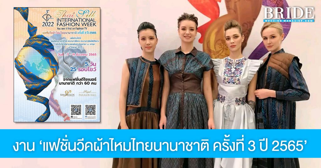 สำนักปลัดสำนักนายกรัฐมนตรี ร่วมกับ สมาคมส่งเสริมผ้าไหมและวัฒนธรรมไทย ผู้รับผิดชอบดำเนินโครงการแฟชั่นวีคผ้าไหมไทยนานาชาติ ครั้งที่ 3 ปี 2565 มีวัตถุประสงค์ เพื่อเป็นการเฉลิมพระเกียรติพระเกียรติสมเด็จพระนางเจ้าสิริกิติ์ พระบรมราชินีนาถ พระบรมราชชนนีพันปีหลวง เนื่องในโอกาสมหามงคลเฉลิมพระชนมพรรษา 90 พรรษา 12 สิงหาคม 2565 โดยร่วมเป็นโครงการเฉลิมพระเกียรติในนามรัฐบาล กำหนดจัดงานในวันที่ 7-11 ธันวาคม 2565 เวลา 16.00 น. ณ รอยัล พารากอน ฮอลล์ ศูนย์การค้าสยามพารากอน