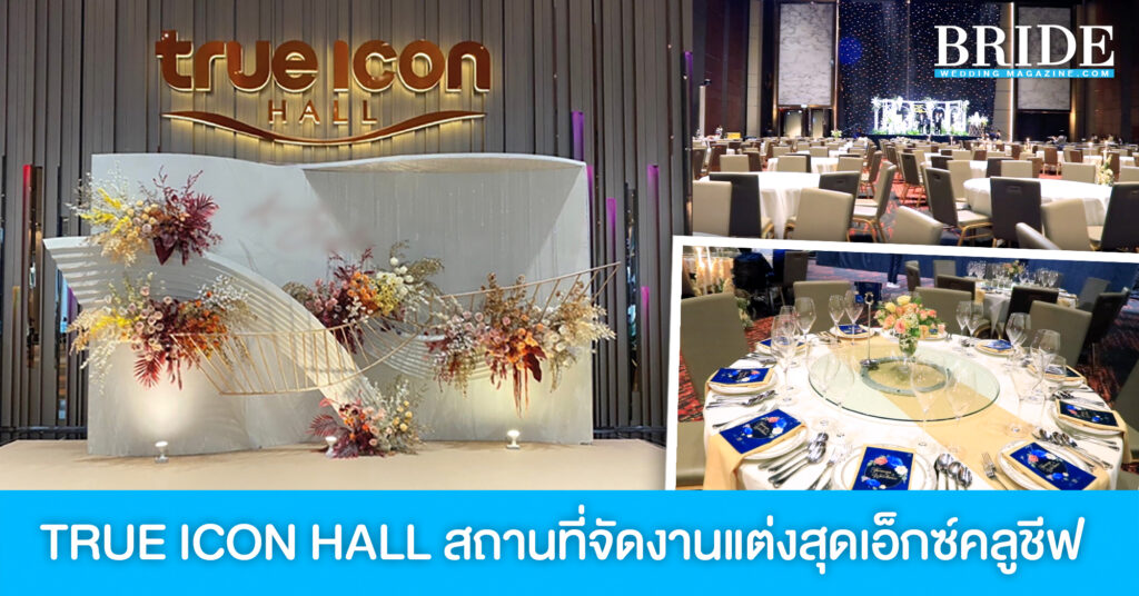 TRUE ICON HALL ที่สุดของสถานที่จัดงานแต่งงานอย่างเหนือระดับ ตั้งอยู่บนชั้น 7 ของศูนย์การค้า ICONSIAM พร้อมทัศนียภาพที่สวยงามอลังการสุดโรแมนติก บนโค้งแม่น้ำเจ้าพระยาและวิวเมือง ด้วยการออกแบบสถานที่ที่เป็นเอกลักษณ์ ผสมความเป็นศิลปะที่ซ่อนอยู่ในทุกการตกแต่งสไตล์ ICONIC LUXURY มาผสมผสานกับเทคโนโลยีร่วมสมัยทั้งระบบแสงและเสียง ที่จะสามารถเนรมิตงานแต่งออกมาได้อย่างสมบูรณ์แบบ
